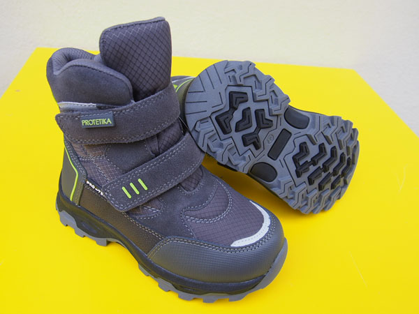 Topánky sú kombinácia kože a pevného šuštiaku, vo vnútri zateplené kožušinkou. Stielka je vyberateľná a má klenbu. Topánočky majú pevnú podrážku. Päta je spevnená. Obuv je opatrená membránou proti vlhkosti, tým pádom môžu poslúžiť zároveň ako snehule.