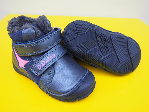 Topánočky vyrába renomovaná firma D.D.Step. Majú široké špičky, flexibilnú a protišmykovú podrážku. Podrážka je ohybná v oboch smeroch, čo zaručuje zdravý vývin chodidla a klenby. Sú pohodlné, odľahčené, vo vnútri zateplené. Sú vyrábané z materiálov najvyššej kvality. Zateplené vložky sú vyberateľné. Topánky majú prekrásny dizajn, krásne aplikácie a mnohé iné zaujímavé detaily ich robia neodolateľnými. Topánočky nie sú vhodné do hlbokého snehu, na tento účel treba použiť snehule. Stielka je jemne tvarovaná. Päta je spevnená.