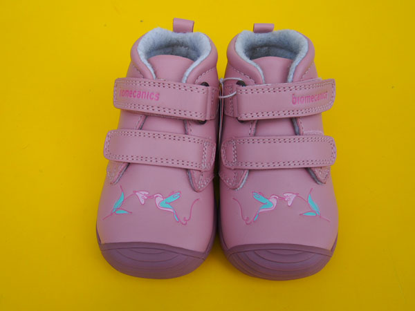 Topánky sú navrhnuté tak, aby umožnili zdravý vývin detských nožičiek. Podrážka je flexibilná v oboch smeroch, zároveň je protišmyková, čo ocenia mamičky aktívnych detí. Vpredu je široká špička, ktorá umožňuje pohodlné rozmiestnenie prštekov, navyše je špica vpredu zosilnená gumou, čo zabraňuje skorému opotrebeniu a okopaniu obuvi. Topánočky sú vyrábané z kvalitnej kože, ktorá neobsahuje žiadne škodlivé prísady. Stielka je vyberateľná, rovná, nemá podporu klenby, je perforovaná, čo umožňuje lepšie dýchanie nožičky a zároveň je antibakteriálna.